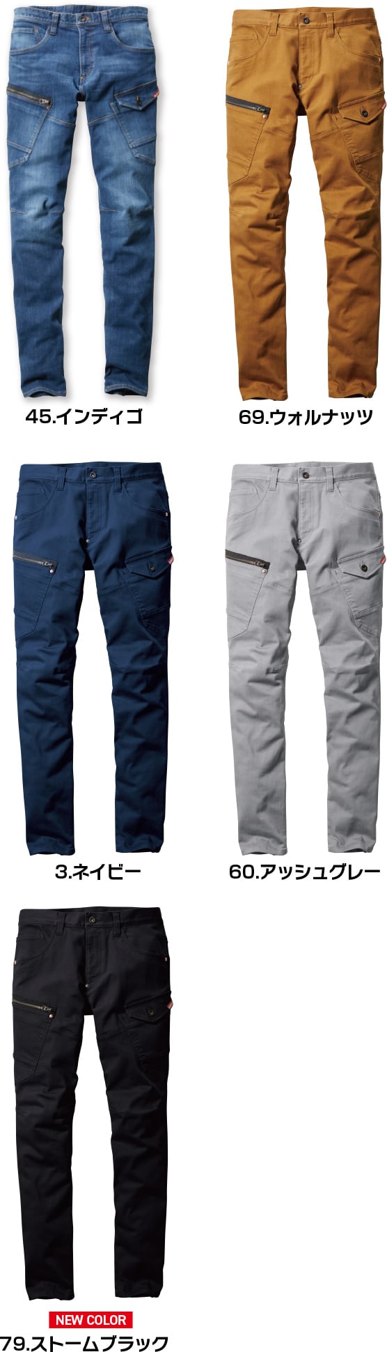 綿65%・ポリエステル19%・ナイロン14%・ポリウレタン2%(インディゴのみ)