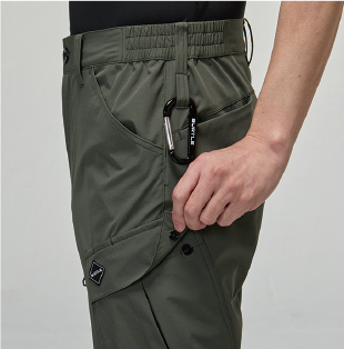 夏場の快適性を高めたテーパードシルエットのテックパンツ